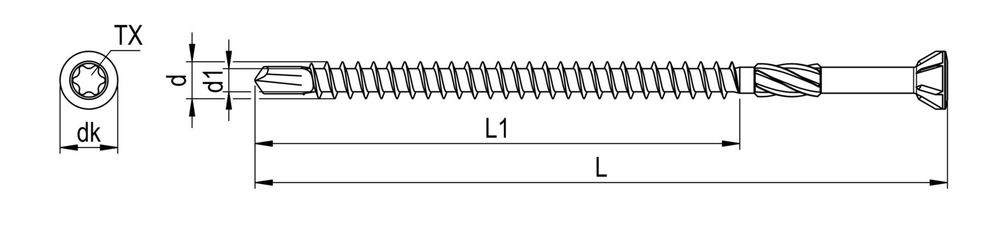 Vrut do dřeva pro upevnění dřeva a profilů z masivního dřeva nebo dřevěných materiálů blízko okraje bez mezer na dřevěné a hliníkové nosné konstrukce v interiéru i exteriéru.