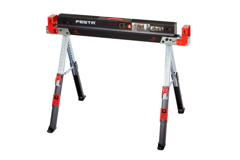 • nosná plocha s protikluznou vrstvou, na jedné straně noh výklopné opěrky pro OSB desky, lamino, apod. s nosností 30 kg na jednu opěrku