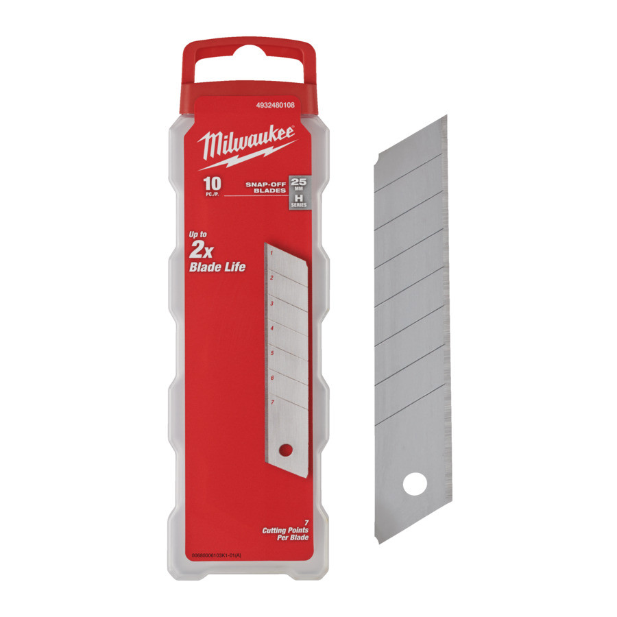 Odlamovací čepele Milwaukee 25 mm jsou určené pro přesné řezání, balení obsahuje 10 kusů a kompatibilitu zajišťuje standardní rozměr pro většinu nožů. Robustní provedení zvyšuje životnost při práci s různými materiály.