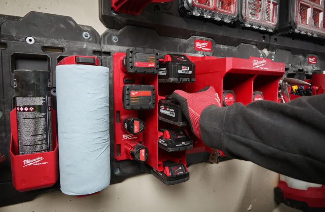 Skladovací polička - držák na akumulátory M18 Milwaukee Packout™ (MI4932480709)