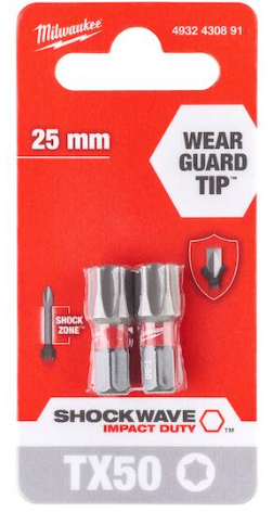 Milwaukee Šroubovací bity SHOCKWAVE IMPACT DUTY TX50 x 25 mm 2 ks 4932430891