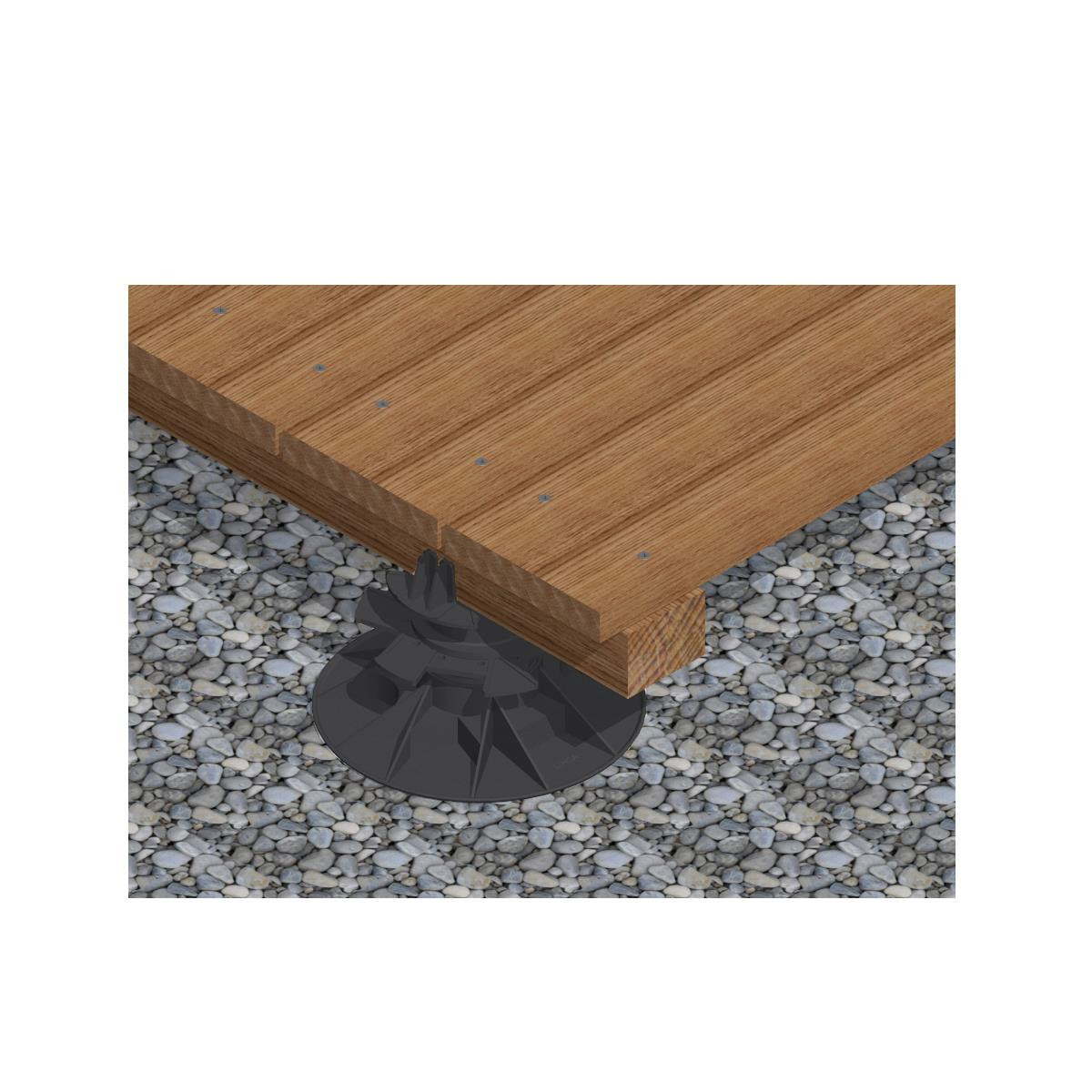 Výškově nastavitelná vzdálenost mezi spodní konstrukcí a každým základem – tato nastavitelná patka šetří 70 % pracovního času ve srovnání s jednotlivými řešeními, spodní konstrukce zůstává suchá a terasa je odvětrávaná.