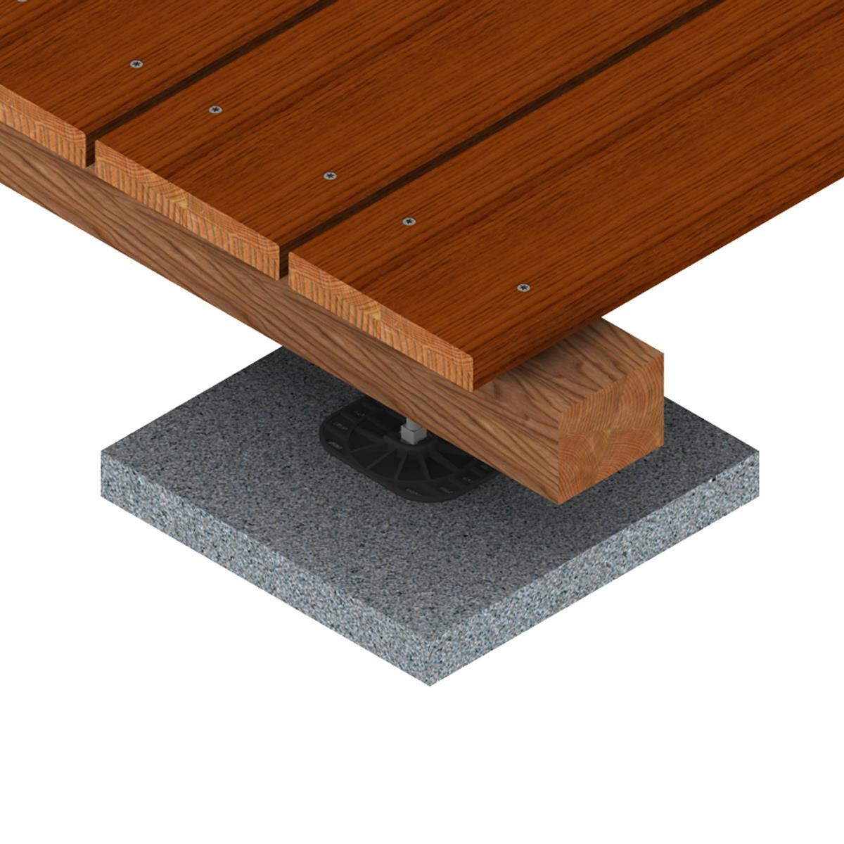 JustiFix II JM je flexibilně upevněn v plastovém izolačním prvku odolném vůči povětrnostním vlivům, což mu umožňuje velmi dobře se přizpůsobit stávajícím nerovnostem a díky tlumení vibrací zvyšuje komfort chůze po terase.