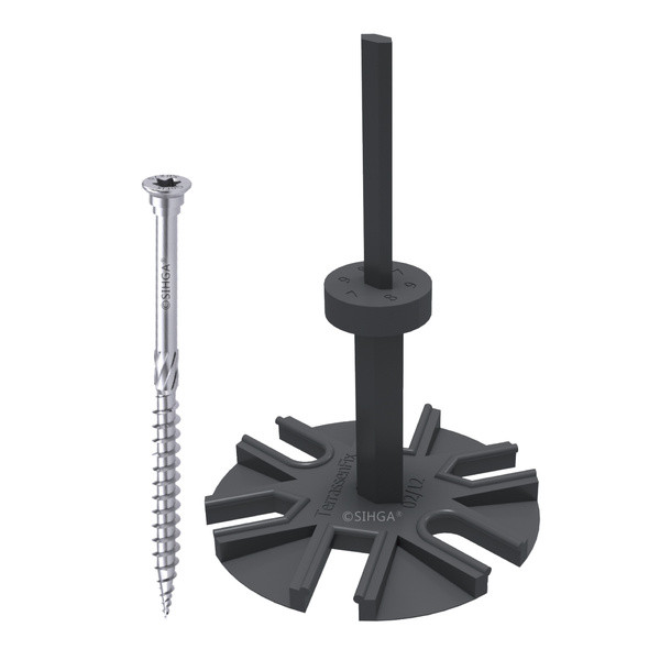 Kromě toho nabízí SIHGA® TerrassenFix® na základě použití distančních kolíků rychlé nastavení šířky spár během montáže, zvolit lze mezi3,4,5, 6, 7, 8 nebo 9 mm.