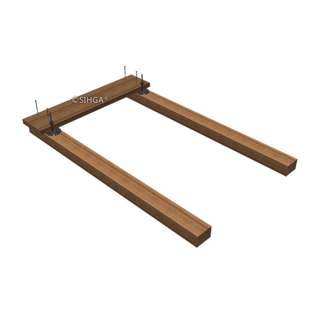 SIHGA® TerrassenFix® nemusí být namáhavě přišroubován na spodní konstrukci, stačí ho pouze položit. Upevnění pak probíhá automaticky následným přišroubováním terasových prken.