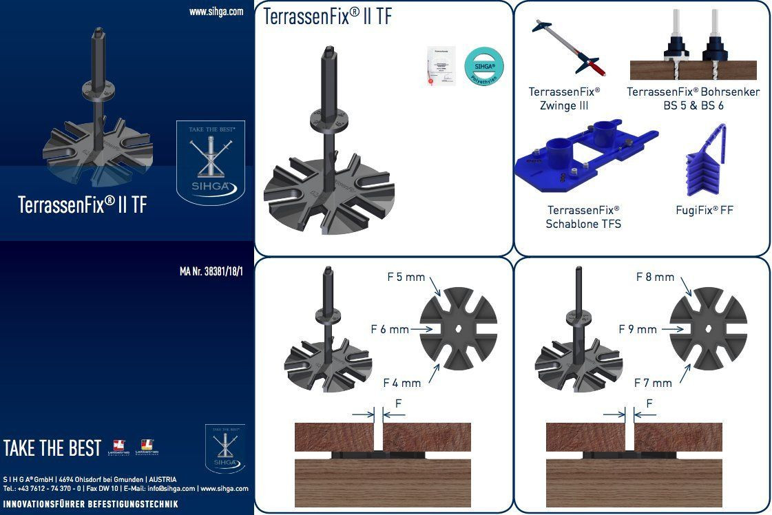 100 ks TerraceFix II TF v montážním balení včetně 5 ks kolíků TerraceFix II TFS a montážního návodu